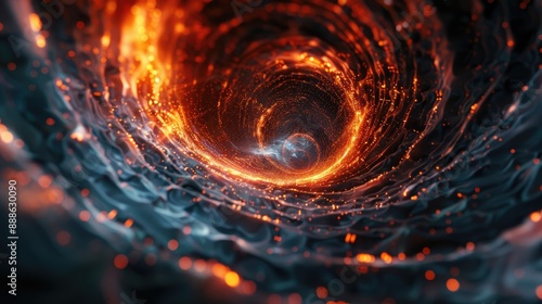 Abstract Vortex of Fiery Energy and Blue Light in a Futuristic Sci-Fi Tunnel