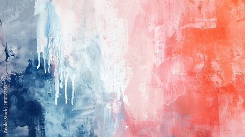 Abstract watercolor and acrylic smear blot creating an interior painting with a textured color stain horizontal background.