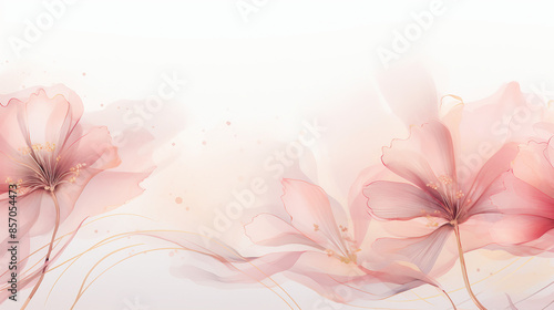 Abstract watercolor art background with pink flowers