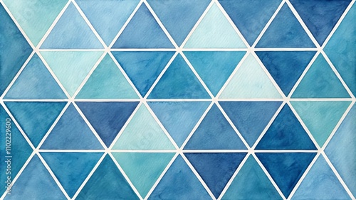 Abstract Watercolor Blue Triangles, Geometric, Pattern, Blue, Watercolor