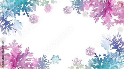 Abstract Watercolor Snowflakes Winter Frame Background