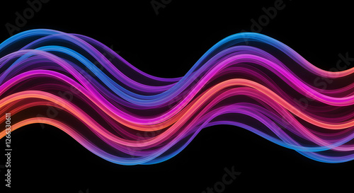 Abstract wave lines pattern dynamic colorful light flowing isolated on a black background—the concept of music, party, technology, modern. Abstract flowing wavy lines. Colorful dynamic wave
