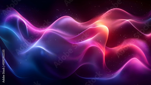 Abstract Waves: Vibrant Hues Dance, Shimmering Cosmic Flow, Digital Art