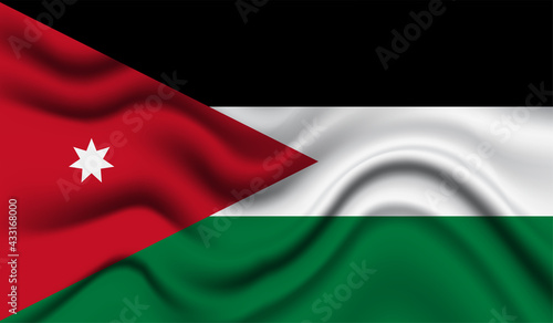 Abstract waving flag of Jordan with curved fabric background. Creative realistic waving flag of Jordan vector background