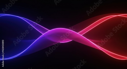 Abstract wavy lines in blue and red intersect on a dark background.