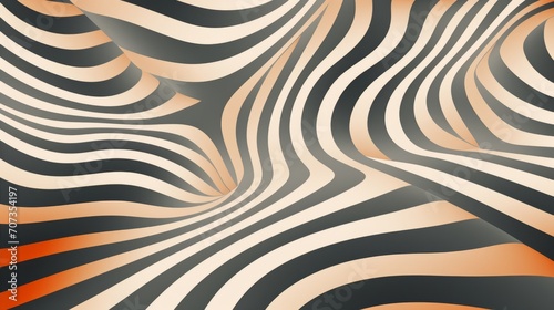 Abstract wavy lines in shades of black, white, and orange create an optical illusion. This image is suitable for backgrounds and visual effects. Optical illusion background.