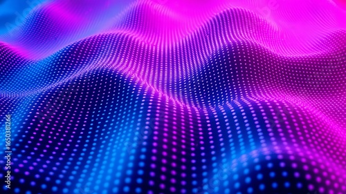 Abstract Wavy Surface Blue Pink Dotted Pattern Neon Gradient Background Texture image