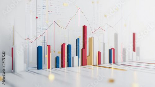 Abstract white background with Colorful charts and graphs with statistics to innovative analyze business potential and forecast future development of companies growth.
