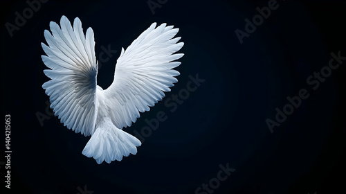 Abstract White Bird With Open Wings Against Dark Blue Background