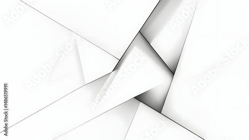 Abstract white geometric triangles with shadows creating a modern minimalist background
