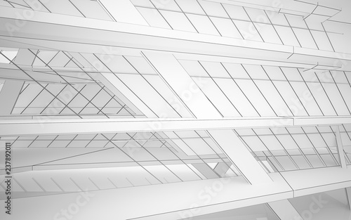Abstract white interior highlights future. Polygon drawing . Architectural background. 3D illustration and rendering