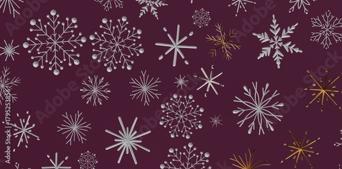 Abstract winter-themed pattern with snowflakes in various sizes and colors, perfect for holiday and seasonal designs. Ideal for backg