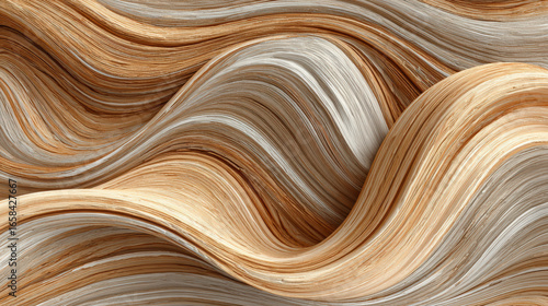 Abstract wooden waves pattern with a smooth, flowing design of intertwined light and dark wood grains.