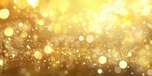 Abstract yellow glitter background with bokeh and light effect for decoration, banner design, yellow bokeh blur circle variety gold white background. Dreamy soft focus wallpaper backdrop.
