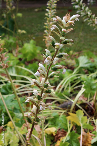 Acanthus mollis, commonly known as bear's breeches,sea dock,bear's foot plant, sea holly or oyster plant