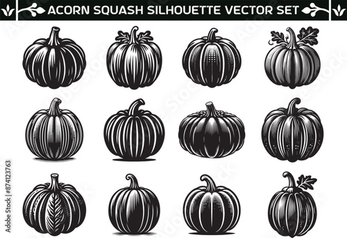 Acorn Squash silhouette vector illustration set