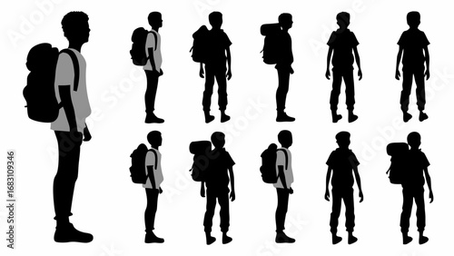 Active hikers silhouette collection showcases outdoor adventure and travel journeys