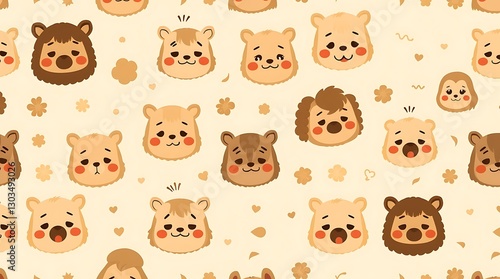 Adorable Bear Faces: A delightful seamless pattern featuring a charming array of adorable bear faces, radiating warmth and joy.