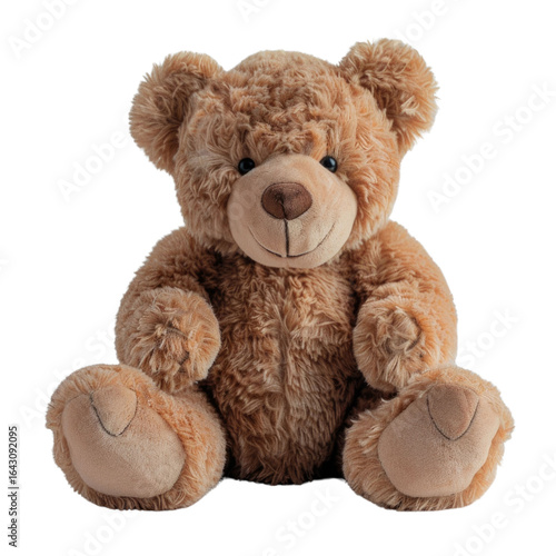 Adorable brown teddy bear sitting, plush toy, soft fur, cute expression. background removed