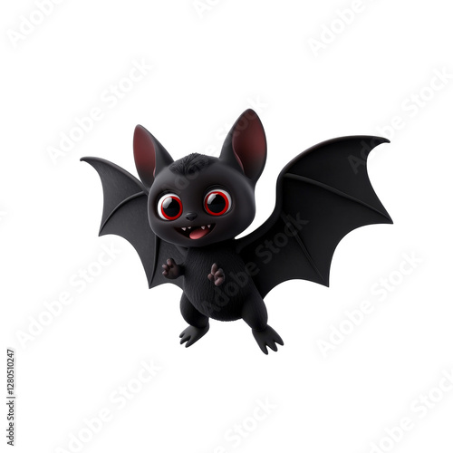 Adorable cartoon bat with big red eyes and wings extended displaying friendly expression