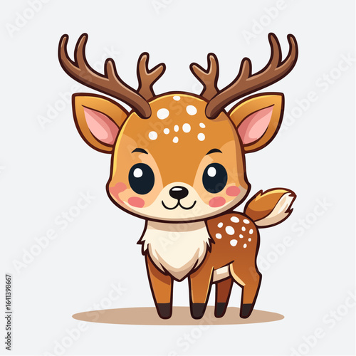 Adorable Cartoon Deer Illustration with Playful Antlers and Charming Spotted Fur Pattern