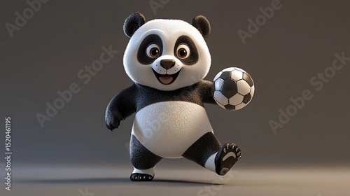 Adorable cartoon panda playing soccer.