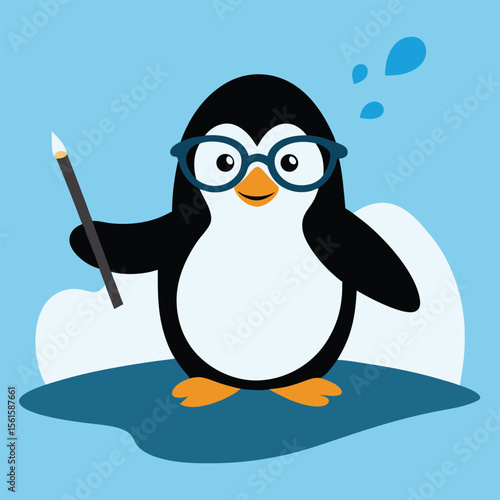 Adorable cartoon penguin character illustration with glasses