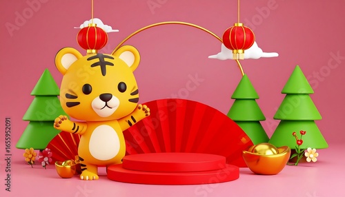 Adorable Cartoon Tiger Celebrates Lunar New Year