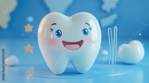 Adorable Cartoon Tooth Character 3D Render Smiling Happy Dental Hygiene Oral Care