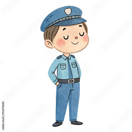 Adorable Clipart of a Policeman Cute Watercolor Illustration