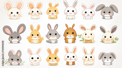 Adorable Collection of Cartoon Bunnies in Various Poses Generative AI