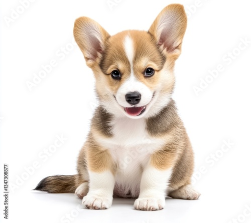 Adorable Corgi Puppy Sitting and Smiling on White Background Studio Shot