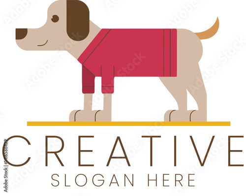 Adorable Dog in Red Sweater Creative Logo Design Illustration Pet Cute Flat Icon Puppy Beige Brown