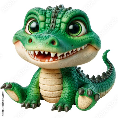 Adorable little crocodile sitting and smiling isolated on transparent background