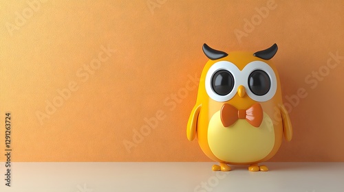 Adorable Orange Cartoon Owl with Horns and Bow Tie against Textured Background