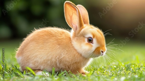 Adorable Orange Fluffy Bunny Rabbit Sitting in Green Grass