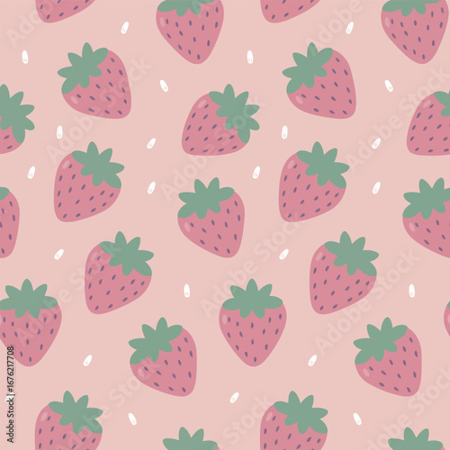 Adorable Pink Strawberry Pattern Seamless Design