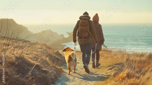 Adorable scenes of pets and owners sharing adventures: hiking trails, beach strolls, a bond strengthened by exploration and companionship.