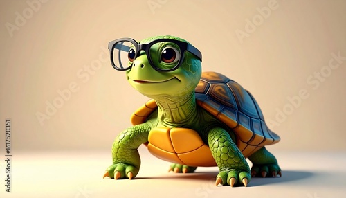 Adorable Turtle with Glasses: A 3D Rendered Image