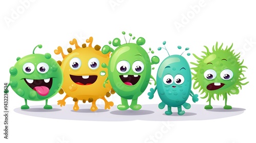 Adorable vector illustration of joyful bacteria showing cute smile in a humorous and engaging manner