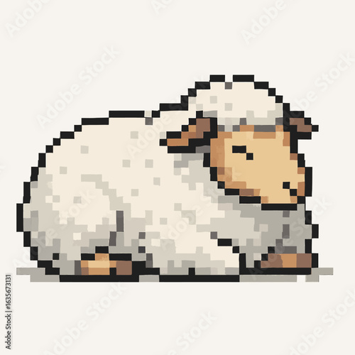 Adorably resting pixel art sheep, a charming and whimsical creature for your creative projects.