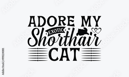 Adore My Exotic Shorthair Cat - Exotic Shorthair Cat T-Shirt Design, Illustration Written Vector T Shirt Design, For Prints On Bags, Posters, Cards.