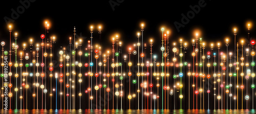 Advanced algorithm visualizing crypto price trends using candlestick charts with digital numbers and glowing lines