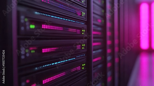 Advanced data center technology exploring the aesthetic of server racks with vibrant led displays in modern infrastructure