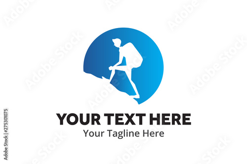 adventure climber unique simple logo creative design in flat style with color . hiker traveler creative simple logo creative design in flat style with color