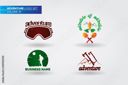 Adventure Logo Set Templates Shovel, Twin Axes, Google and silhouette