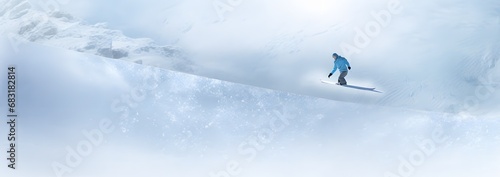 Adventurous Skier in Blue Jacket Enjoying a Thrilling Ride Down a Sun-Kissed Snowy Slope Generative AI