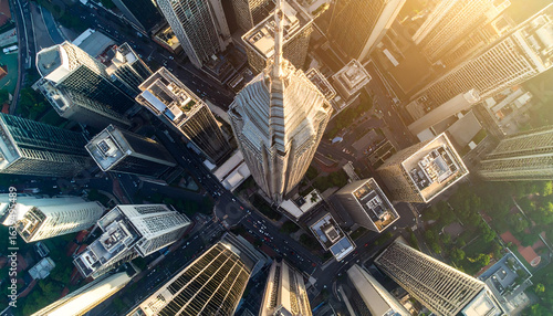 Aerial Cityscape with Skyscrapers, and Sunset.
