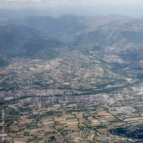 aerial cityscape with Sulmona historical little town, L'Aquila, Italy