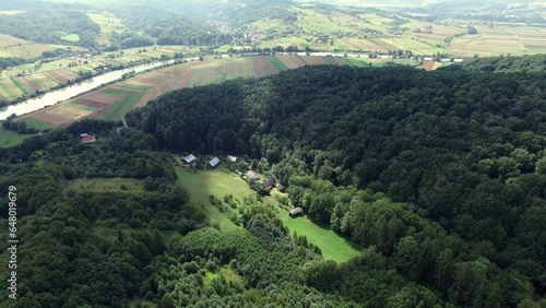 Aerial of Village Houses on Forest Hills in Summer
